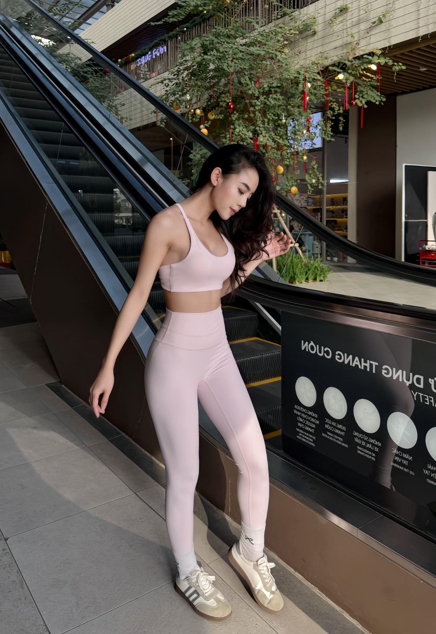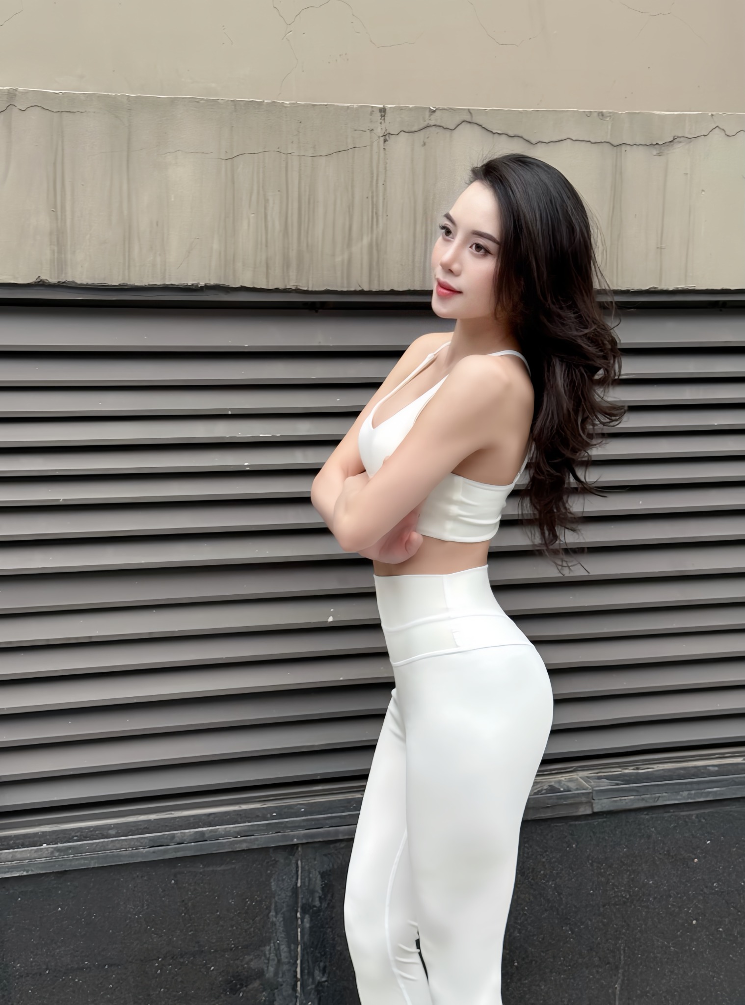 Chất vải cực kỳ co giãn, co giãn 4 chiều, ôm sát theo đường cong cơ thể mà không bám dính.