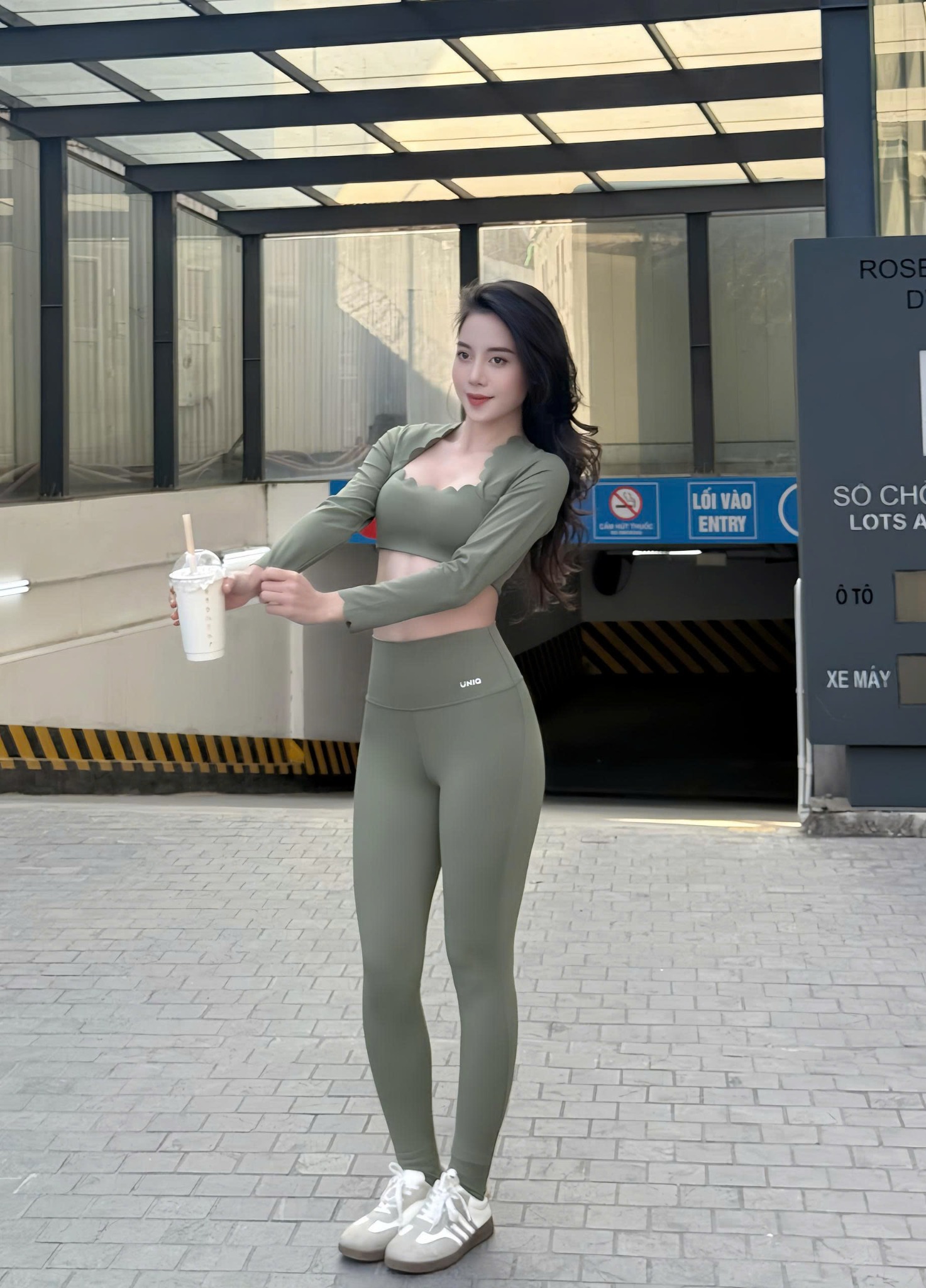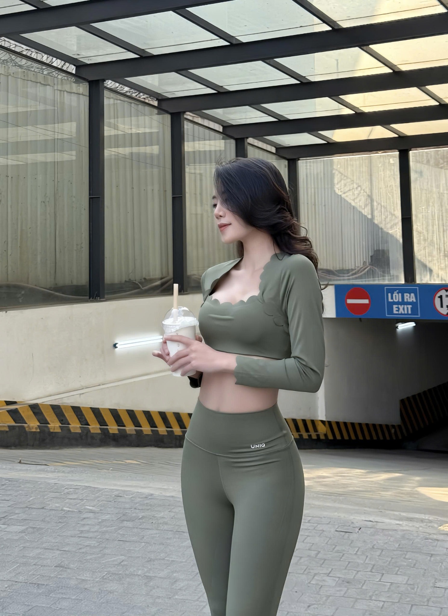 Bộ Đồ Tập Gym Yoga Nữ UNIQ Cool Peel - Áo Viền Sóng Tay Dài & Quần Legging Dài KHUYẾN MÃI - ƯU ĐÃI