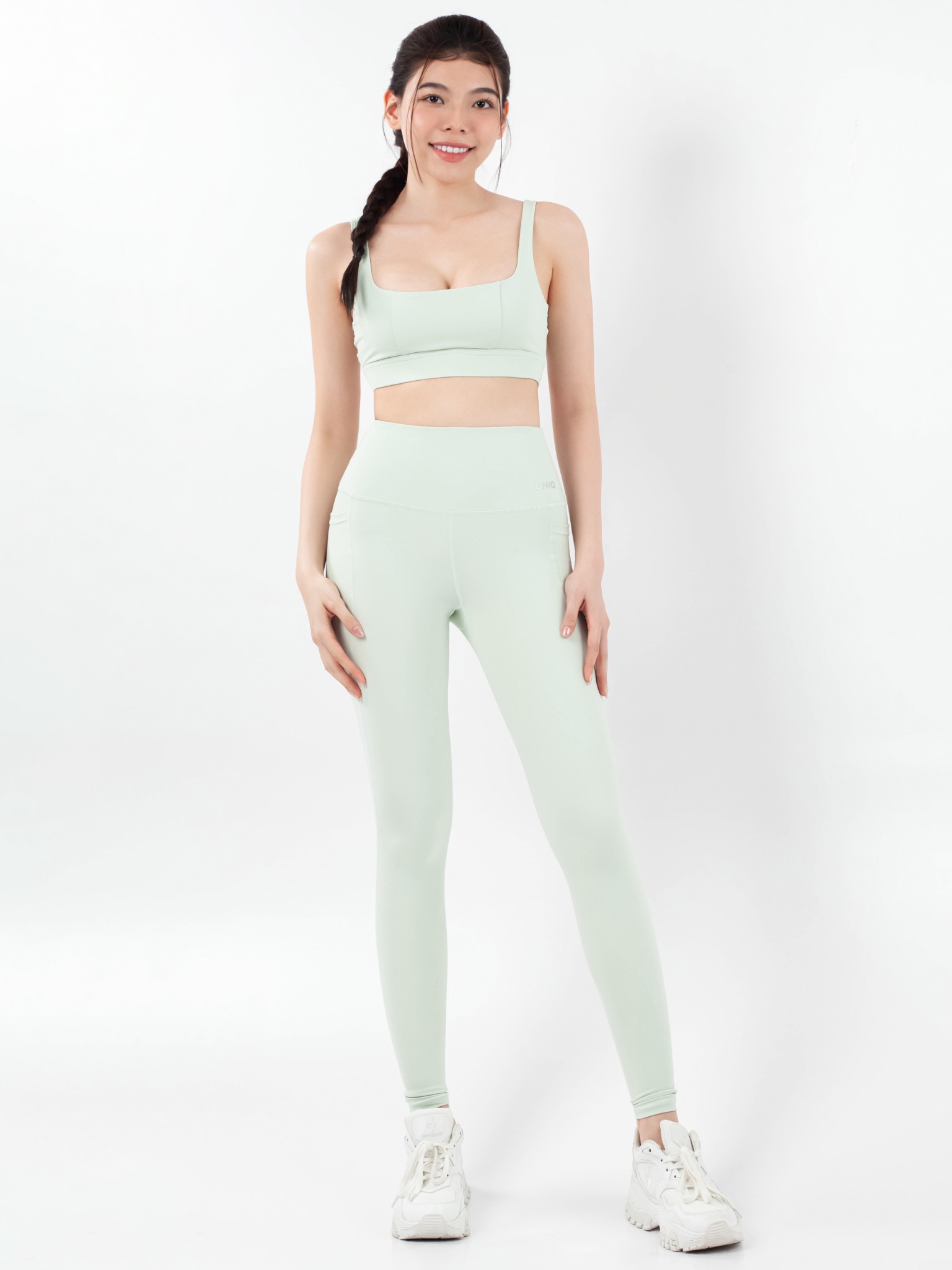 Bộ Đồ Tập Gym Yoga Nữ UNIQ Cool Peel - Áo Cổ Vuông Lưng Đồng Hồ Cát & Quần Legging KHUYẾN MÃI - ƯU ĐÃI