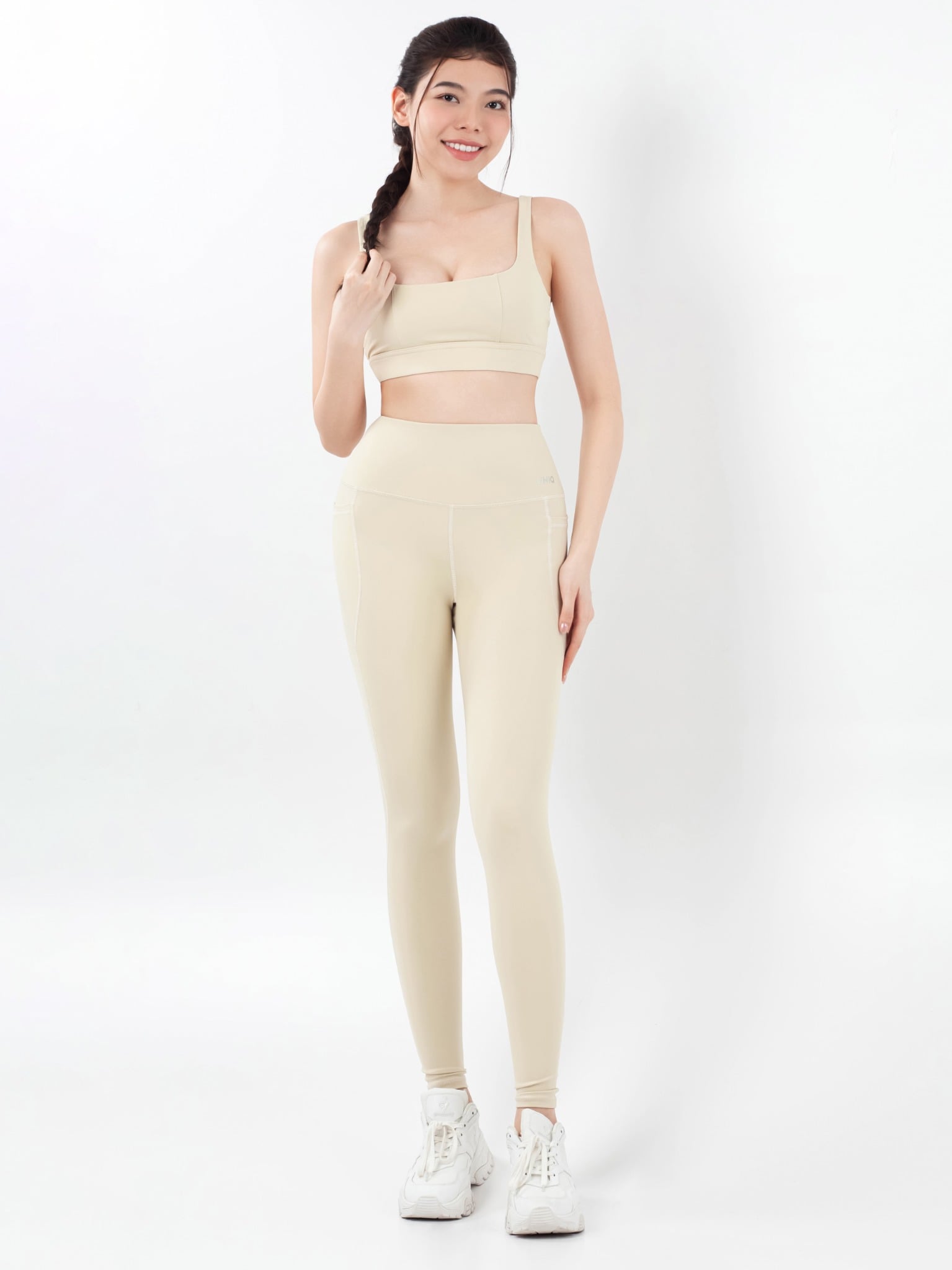 Bộ Đồ Tập Gym Yoga Nữ UNIQ Cool Peel - Áo Cổ Vuông Lưng Đồng Hồ Cát & Quần Legging