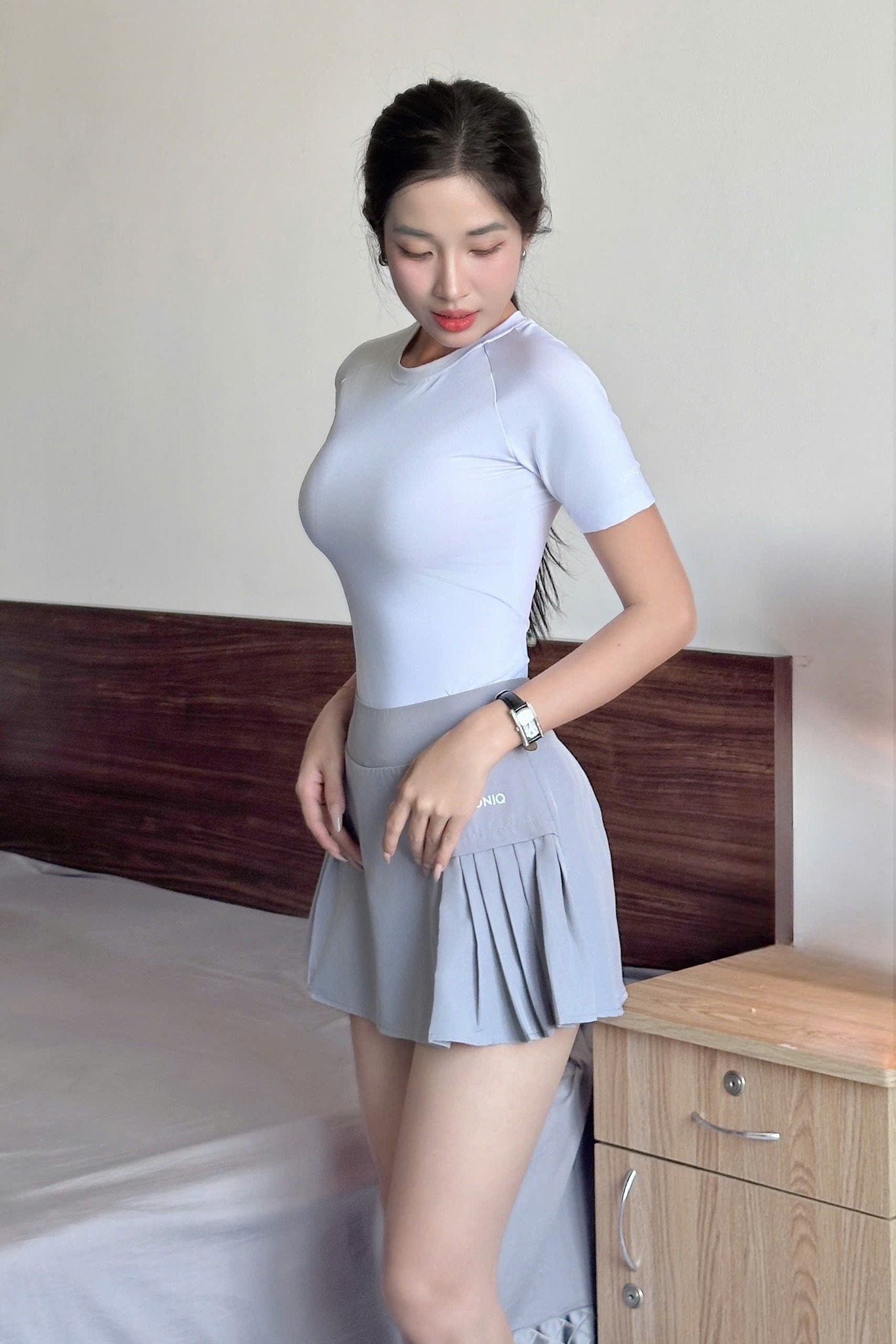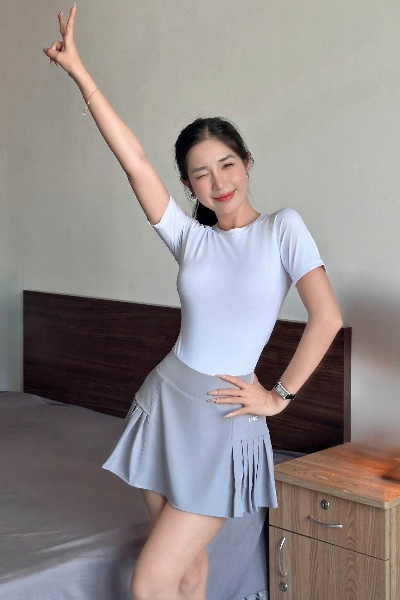 Set Váy Pickleball Thể Thao Cool Peel Áo Thun Mix Chân Váy Xếp Ly