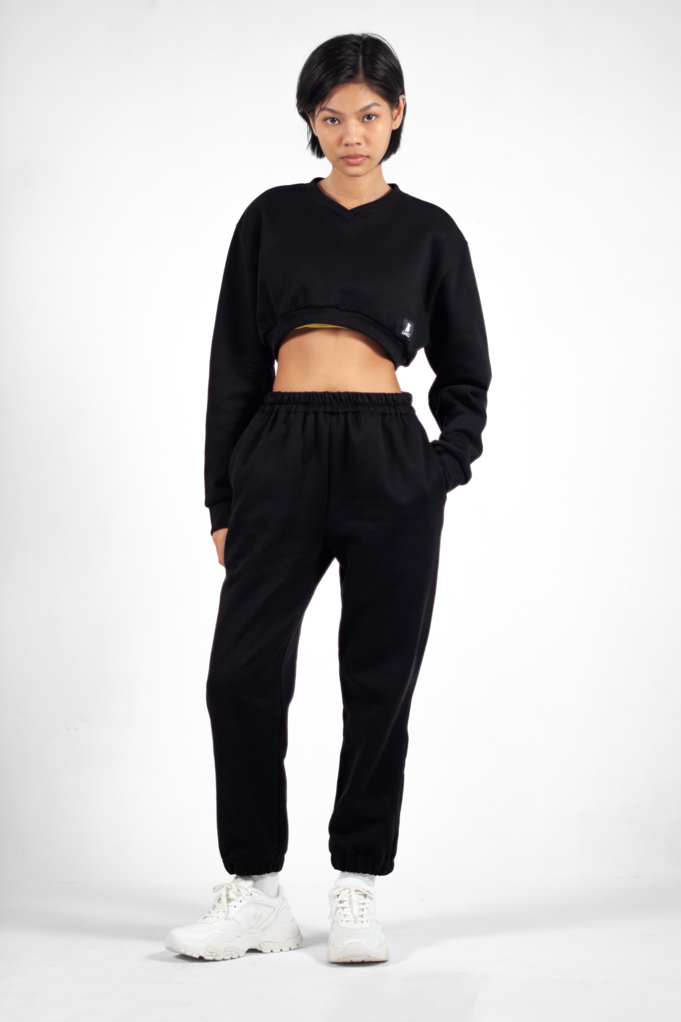 Quần Jogger Nỉ Ống Vừa phiên bản quần cá tính mặc kèm áo bra thể thao, hoặc áo croptop, tạo nên một bộ đồ thể thao đầy năng động.