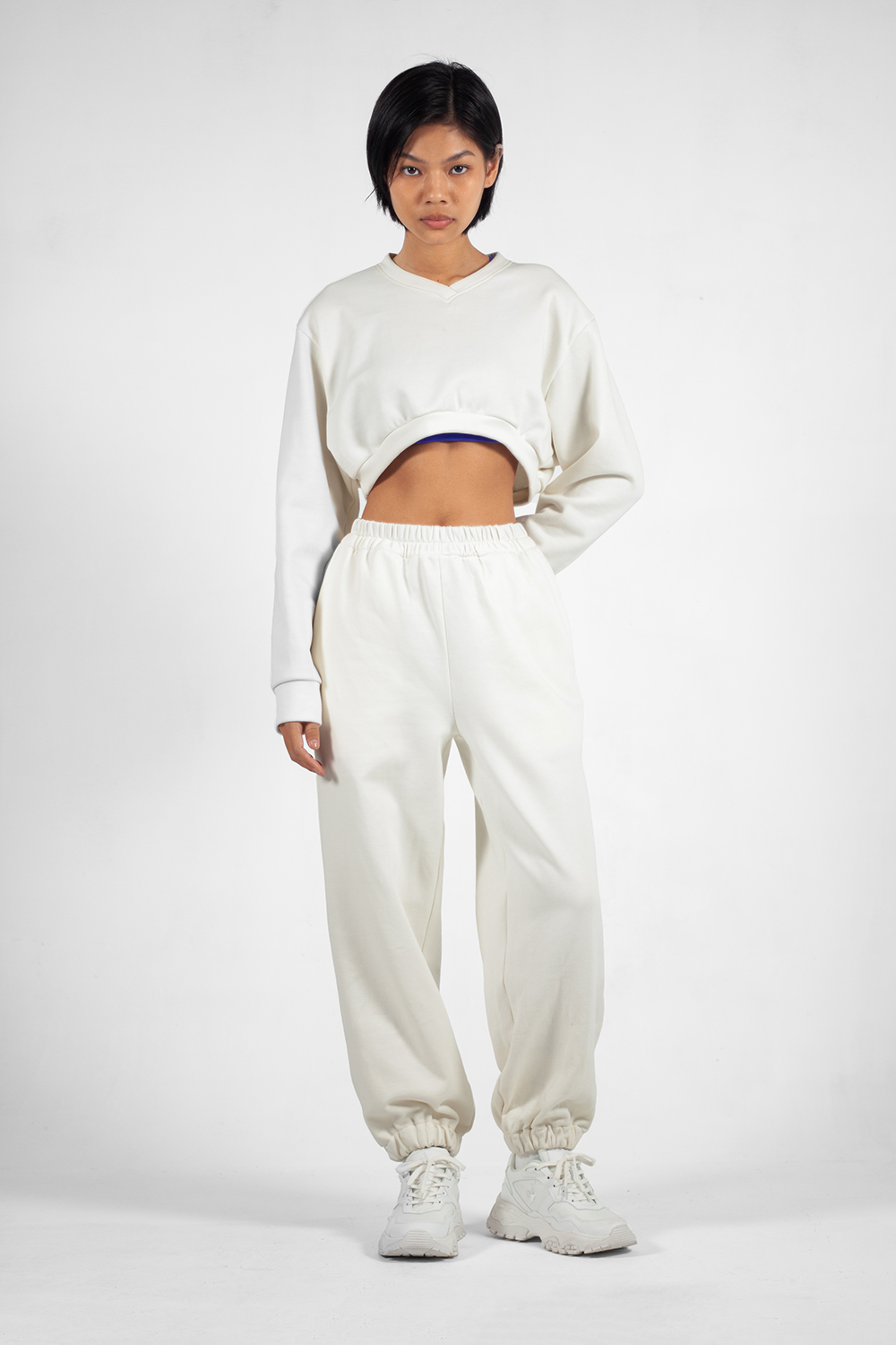 Quần Jogger Nỉ Ống Rộng phiên bản quần cá tính mặc kèm áo bra thể thao, hoặc áo croptop, tạo nên một bộ đồ thể thao đầy năng động.