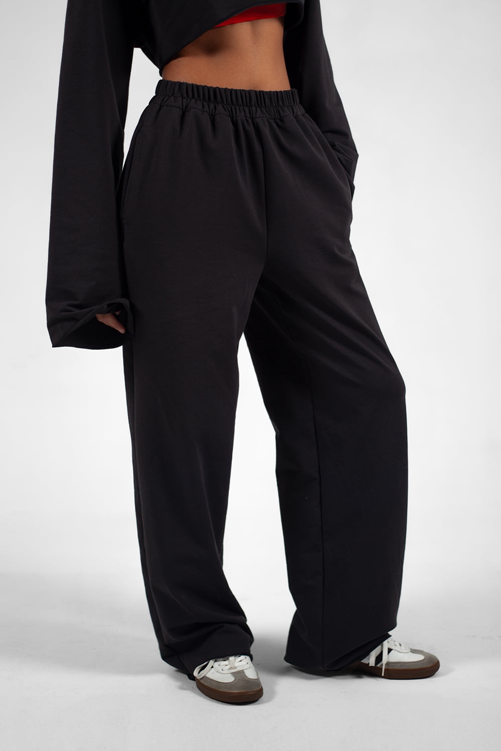 Quần Nỉ Ống Rộng phiên bản quần cá tính mặc kèm áo bra thể thao, hoặc áo croptop, tạo nên một bộ đồ thể thao đầy năng động.