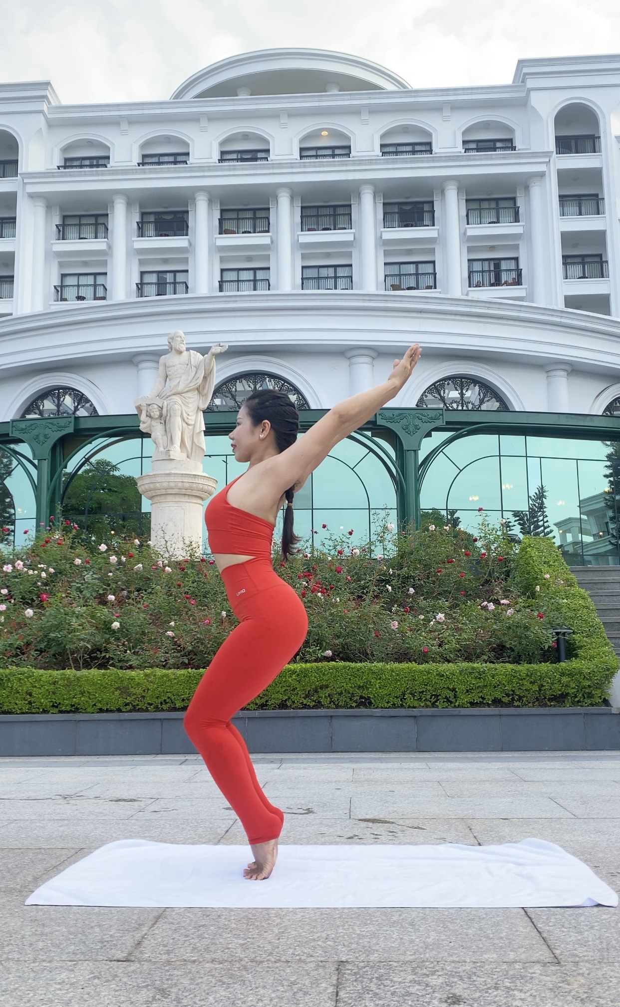 Chất vải cực kỳ co giãn, co giãn 4 chiều, ôm sát theo đường cong cơ thể mà không bám dính.