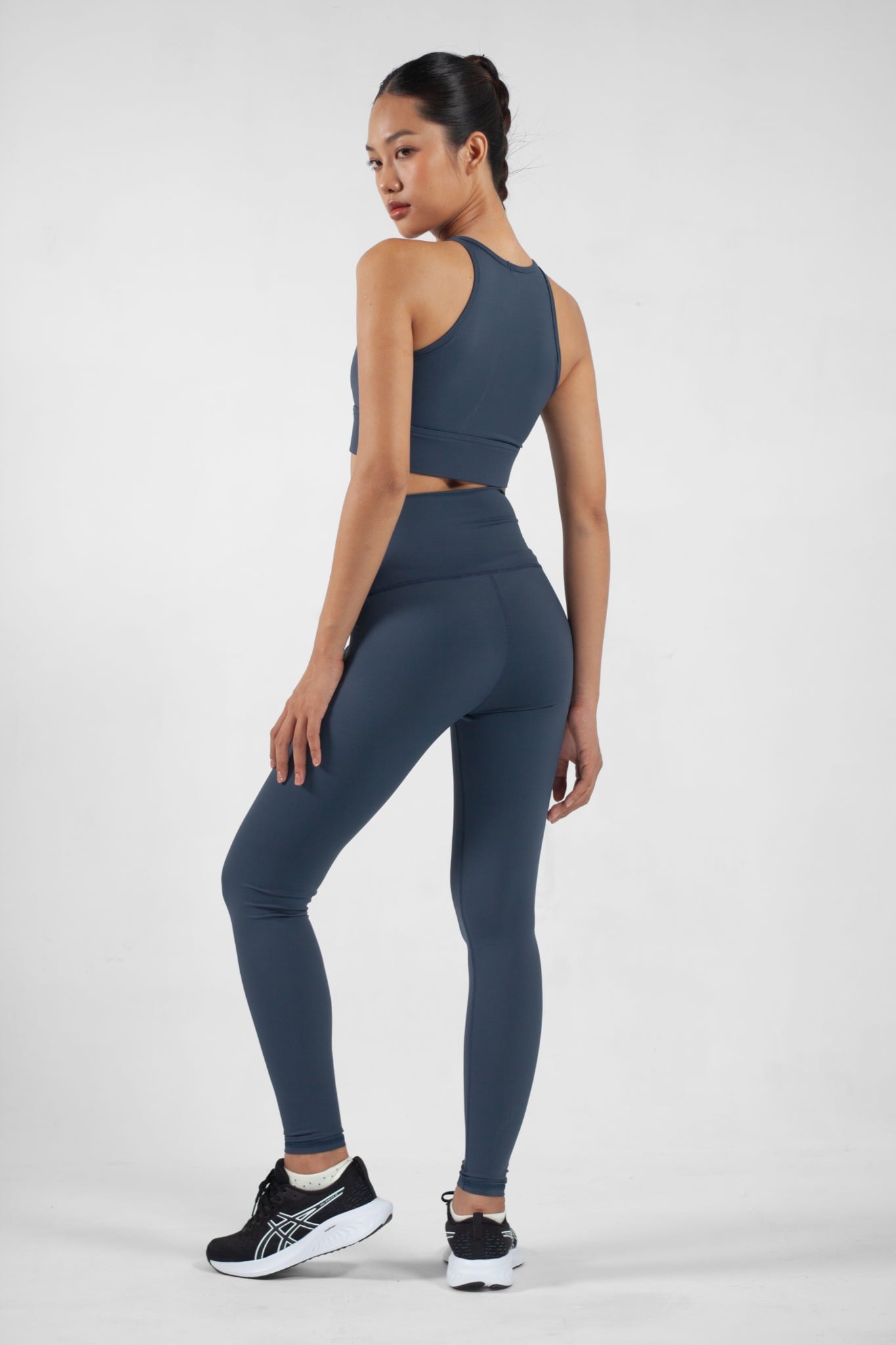 Chất vải cực kỳ co giãn, co giãn 4 chiều, ôm sát theo đường cong cơ thể mà không bám dính.