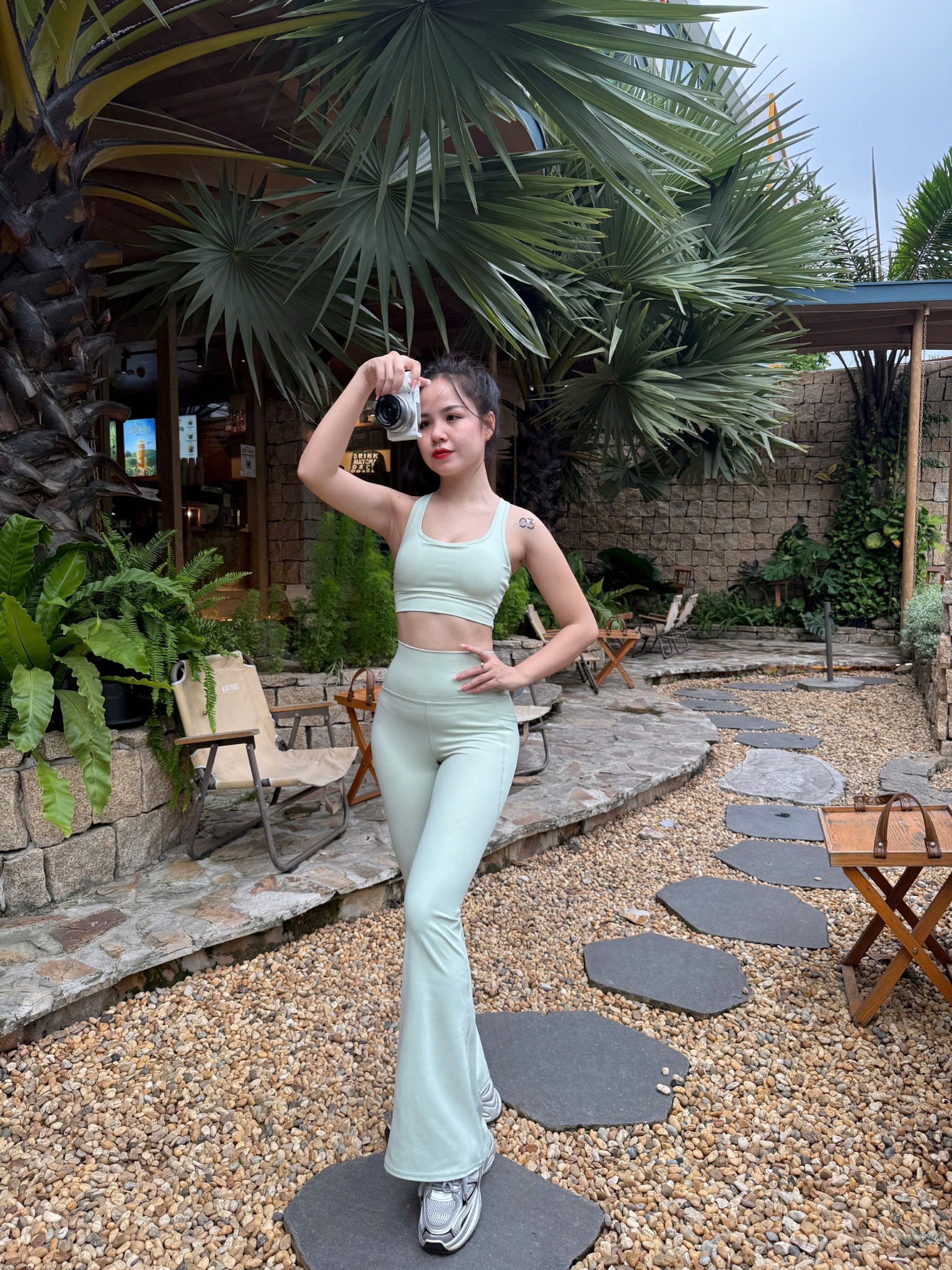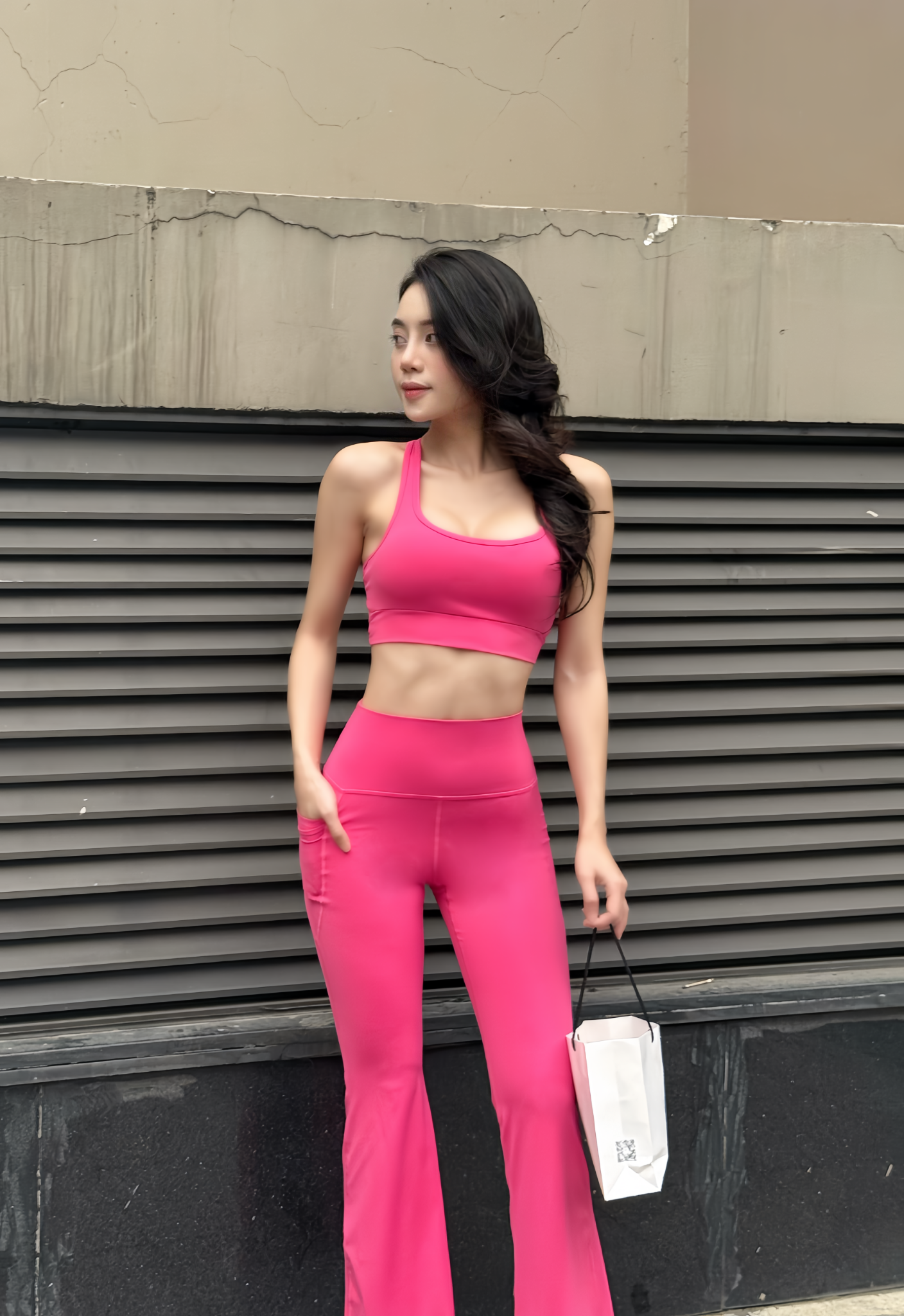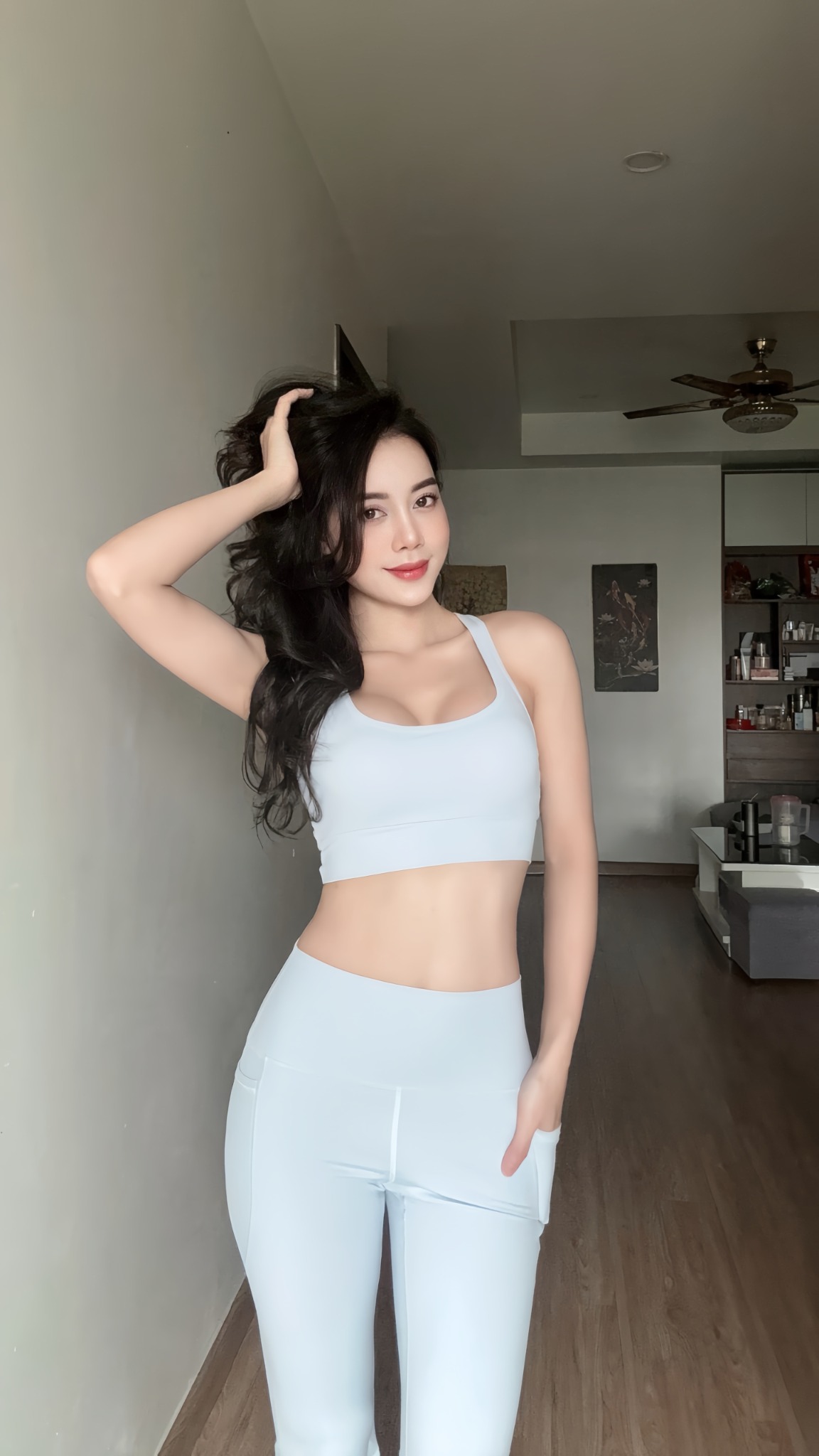 Chất vải cực kỳ co giãn, co giãn 4 chiều, ôm sát theo đường cong cơ thể mà không bám dính.