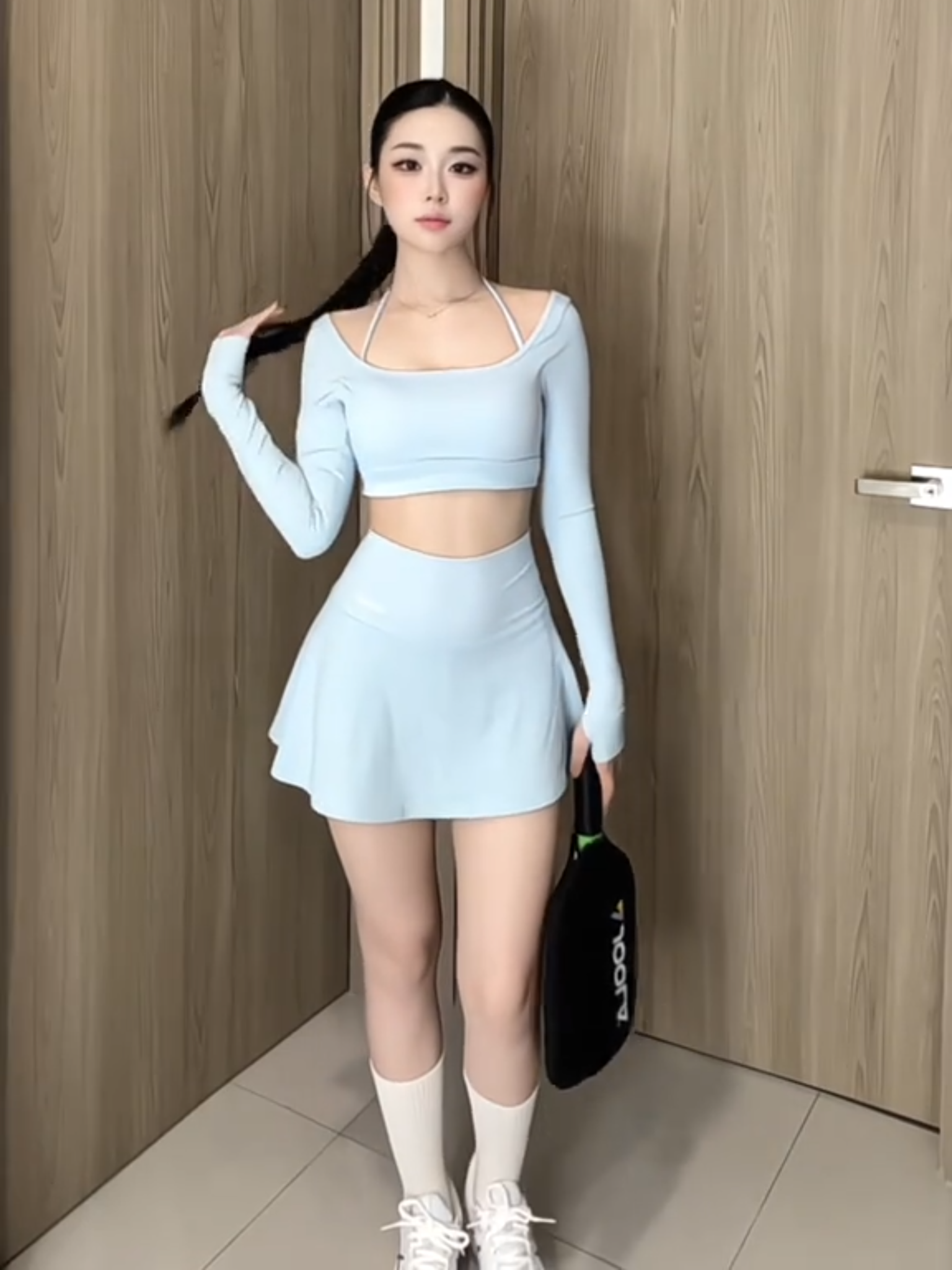 Chất vải cực kỳ co giãn, co giãn 4 chiều, ôm sát theo đường cong cơ thể mà không bám dính.